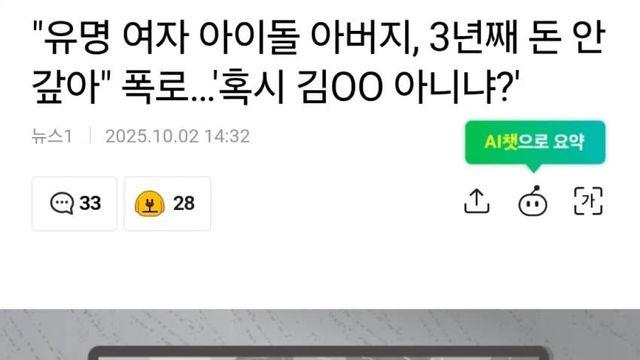 "유명 여자 아이돌 아버지, 3년째 돈 안 갚아" 폭로시보드 2025.10.02 |