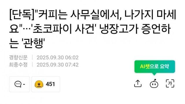 "커피는 사무실에서, 나가지 마세요"···'초코파이 사건' 관행시보드 2025.09.30 |
