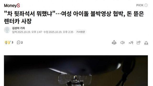 "차 뒷좌석서 뭐했냐"…여성 아이돌 블박영상 협박, 돈 뜯은 렌터카 사장시보드 2025.10.20 |