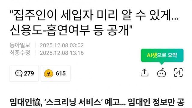 "집주인이 세입자 미리 알 수 있게…신용도-흡연여부 등 공개"시보드 2025.12.08 |