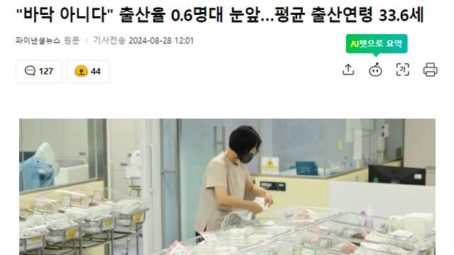 "바닥 아니다" 출산율 0.6명대 눈앞…평균 출산연령 33.6세