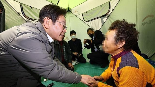이재명에 “왜 이제 왔나” 토로한 이재민…李 “화날만 하지요”