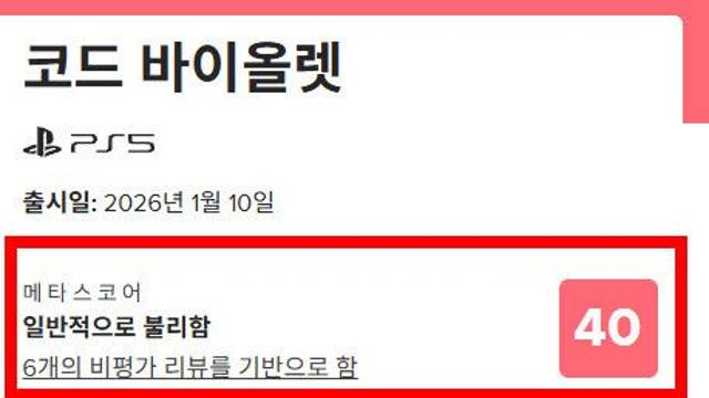 "점수 잘못 본 줄"...코드 바이올렛, 메타크리틱 충격 점수게임와이 2026.01.13 |